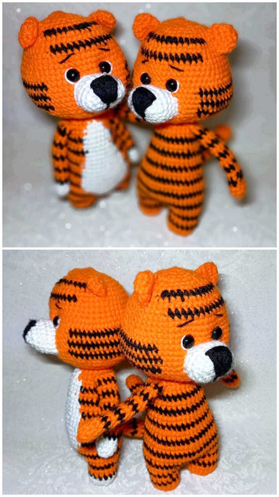 • Embroider stripes on the head with thread of black yarn (between rounds 10 and 11, 12 and 13, 14 and 15).